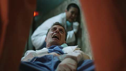 Fort heureusement, Sutures a la bonne idée de ne pas s'abandonner à un récit cousu de fil blanc et d'expédier sa bande de teens dans les couloirs d'un hôpital crados, à l'outillage rouillé et aux murs moisis. On y retire les implants mammaires sans étourdir la patiente (on sait jamais c'est peut être du P.I.P.), on inocules des virus en pagaille et on coupe les malades en quatre pour alimenter le marché international de l'organe à prix cassé (vive la mondialisation). Un service aux méthodes très expérimentales dirigé par un chirurgien joyeusement barge (Ah le mythe du scientifique fou a encore de beaux jours devant lui). Dans ce décor très inspiré du diptyque d'Eli Roth, Sutures accouche assurément de sa meilleure demi heure et dépasse par la même occasion sa condition de DTV horrifique lambda. Ce petit festival de prélèvements à vif, amputations et souffrances, servi par des effets spéciaux convaincants, permet en tous cas de laisser au vestiaire de la mémoire quelques impressions de déjà vu (Tourista, la série des Hostel) et un dernier quart d'heure tiré par les coutures.