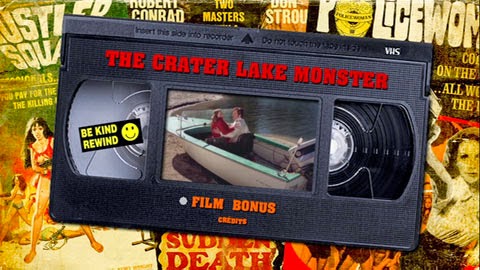 Étonnante douceur d'un mois de septembre, nos cheveux dans le vent, regards perdus dans un apocalypse rougeoyant, crépuscule de feu nous faisant croire que l'été défunt brûle encore de toutes ses flammes à l'autre bout de l'horizon. Au loin, un dinosaure fait trempette, plus près, les amoureux s'enlacent, narguant d'innocents baisers le plus ordinaire des désastres... La barque de leur été prend l'eau de toute part. L'affiche de «The Crater Lake Monster» parle mieux de la fin des vacances que la larme discrète roulant sur la joue des jeunes filles lorsque vient l'heure de rendre ses premiers émois aux vagues. Patte de nez à ce lugubre retour à la réalité, le chat qui tousse (On lui avait bien dit, depuis le temps qu'il fume, ça devait arriver) revient aux affaires avec une nouvelle série de digipacks estampillés «Collection Exploitation Cinema » ... entre anglicisme et dyslexie donc. Ecranbis.com s'est envoyé la galette entre deux crises de banana spleen.