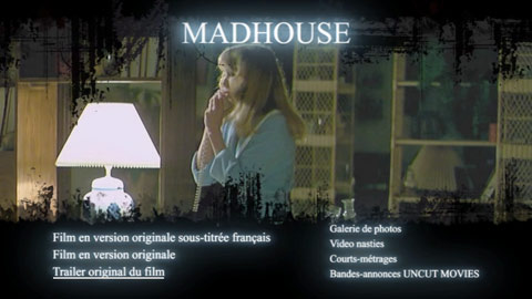 Pour livrer son édition de «Mad House» , Uncut Movies a vraisemblablement composé avec le matériel existant. Le master utilisé ne brille ni pas son piqué, ni par sa colorimétrie, mais présente l’intérêt de proposer le film dans son format scope d'origine (scope 2.35) et dans sa version intégrale. Notez que le film étant resté à priori invisible en France, Mad House ne bénéficie que d'une piste audio originale américaine, cependant sous titrée en français. Dans la cave au bonus, la bande annonce du film, deux courts métrages et deux diaporamas dont un est consacré aux jaquettes VHS des vidéonasties.