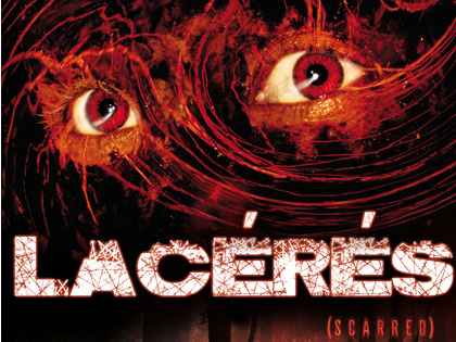 Enfin un film qui te la coupe diront les mauvaises langues ! Scarred , toute petite production horrifique US datant de 2005 débarque (tardivement donc) de ce côté de l'Atlantique sous le titre « Lacérés » Et c'est Emylia qui s'y est collé ! Au programme : une variation sur « Les yeux sans visage » en mode "Do it Yourself " dans les bois, une bande de touristes comme on les aime et du sang ...Oui Du sang !!!! (Rire Satanique !). Nous avons reçu le dvd hier avec un petit mot de l'éditeur : « Hey , ça t'écorcherais la gueule de faire une critique ? » . Nous nous sommes exécutés !