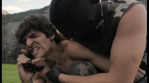 Tantôt appliqué, tantôt foutraque la réalisation de Berthon vaut son pesant de douille et l'ami Doukhan, muscles bandés (le reste on sait pas, faudra qu'on lui demande) incarne avec un appréciable faux sérieux le sauveur providentiel des United State of Rhône alpes. Le reste est une histoire de pieds dans les couilles, de mains dans la gueule et de répliques poético-printanières que notre bon sens , que dis je notre extreme rafinnement nous emepeche de reproduire dans ces vertueueses colonnes numériques. La chose nous gratiffiant en plus d'un peu de gore, de fesses, de sueurs et d'un combat épique contre le Père Salé. (On retrouve presque l'intensité du duel Alain Petit/Ogroff dans l'oeuvre éponyme de Moutier, c'est dire), on finirait presque par regretter que Mathieu Berthon n'est pas étiré ce plaisir coupable sur un runtime plus conséquent.