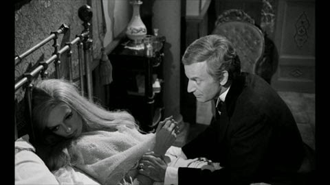 Caiano, Mario de son prénom, aurait gardé de son enfance, un goût pour le récit fantastique et le conte horrifique. La trentaine passée, le cinéaste dont la carrière fait les vas et viens entre les barges du péplum et du western, parvient à convaincre son père de financer «Amanti d'oltretomba». Le budget ne permet qu'un cauchemar sans couleur, que Caiano tournera en quatre semaines aux alentours de Rome. Une production quelque peu démunie donc qui va toutefois s'autoriser à la convocation de l'incontestable reine du genre. Barbara Steele balaiera le plateau de son mystérieux regard, pour un nouveau rôle à facettes. Rôle dont la nature pour ainsi dire doublement double (Blonde, brune, morte et vivante) trouvera la plus graphique des expressions dans un maquillage depuis resté célèbre. L'art de faire rejoindre le fond et la forme !