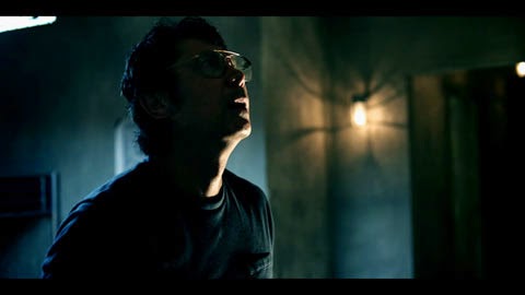 Dans le second segment, le petit Steven traverse comme on dit une mauvaise passe. Une mère absente, un père tactile et voilà qu'en plus le gamin se trouve victime d'hallucinations . Une étrange créature toute de noir vêtue lui colle aux frusques. Comble de l'humiliation , il est pris en flagrant délit d'une lecture peu catholique par sa jolie et jeune institutrice (C'est le seul élément fantastique du film). Le père convoqué le ramène furax au bercail, en lui promettant une correction dont il se souviendra. Mais le monstre harceleur compte lui aussi participer à la fête... Pour notre troisième conte de barge, James Silo (Lou Diamond Phillips) brillant chercheur, semble prendre les prédictions des Mayas au sérieux. Pour lui aucun doute n'est possible, les signes ne trompent pas , l'apocalypse est en vue. Obsédé par la fin des temps, il se construit un abri sous terrain, espérant ainsi sauver sa famille. Pas de chance, lorsque le feu d’artifice commence, il est le seul à trouver la porte de son terrier. 600 jours plus tard, éreinté par la solitude et le manque d'activité, il sombre dans la dépression. Mais soudain on frappe à la porte !