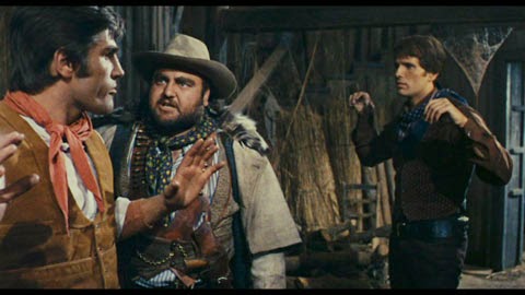 Cette pépite oubliée signée par la main de Duccio Tessari est connu pour déposer (avec quelques autres pélochinettes dont ...E per tetto un cielo di stelle ou Un train pour Durango dont Tessari, le monde est petit, fut co-scénariste ) les fondations d'un versant burlesque, voire parodique de l'italo-western. «Vivo o preferibilmente morti» ouvre ainsi par la force de son tandem comique la voie à E.B. Clucher (Enzo Barboni ), Bud Spencer et Terence Hill. Trio promis à embrasser un succès populaire l'année suivant avec Lo chiamavano Trinità (On l'appelle Trinita). Giuliano Gemma, beau comme un camion et acteur fétiche de Duccio Tessari depuis «Les Titans» est invité à arpenter le plateau. Suivi de prés par un certain Nino Benvenuti, distributeur de châtaignes italiennes ayant décroché la médaille d'or aux jeux olympiques de Rome en 1960. Le beau Nino a beau être l'un des plus populaires sportifs de la grande botte, sa carrière d'acteur tournera court. Éjecté du ring cinématographique par la critique, il jette l'éponge, non sans avoir à nouveau tenté sa chance en 1975 dans un polar titré «Marc la gâchette» , sorti dans les salles obscures françaises en 1979 puis exploité en VHS sous le titre tout aussi peu parlant de «Justice sans sommation» (Chez Delta Vidéo). Ce dont vous vous foutez complètement mais ça me fait tellement plaisir de l'écrire. Si si !