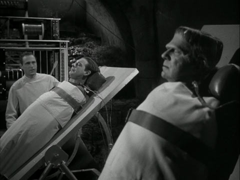 Nous voilà sans doute face à un clin d’œil dont seules l'histoire ou la fatalité ont le secret. Après l'immense succès populaire de Dracula, Bela Lugosi fut pressenti pour incarner le monstre du tout premier Frankenstein. Mais suite à quelques tentatives de maquillage nous dit-on désastreuses, l'acteur aurait pris la décision de quitter le navire et c'est finalement Boris Karloff qui obtiendra la rôle. Pourtant la petite histoire de Bela et du monstre grisâtre (la couleur n'étant pas encore d'actualité) devait se poursuivre après le triomphe des deux chefs d’œuvres de Whale. Lugosi entre dans la franchise par la porte de derrière dès le troisième opus (Le fils de Frankenstein), incarnant un assistant du docteur Frankenstein baptisé pour l'occasion Ygor. Puis en 1943, participant à l’extraordinaire turn over qui caractérise la franchise, il deviendra enfin mais pour un seul et unique film, la créature . Dans "Frankenstein meets the werewolf", il ne sera d'ailleurs pas le seul à sauter d'un rôle à l'autre. Lon Chaney JR qui prêtait sa silhouette au géant monstrueux dans le précédent métrage (Le spectre de Frankenstein ) devient ici un loup garou n'assumant guère sa condition d'animorphe, Chienne de vie !