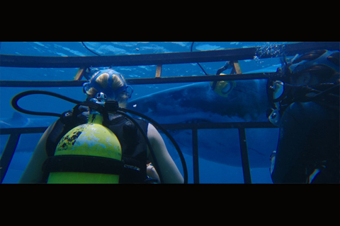 Oui, c'était parti pour ne pas le faire (Prems, ça le fait trop pas …. je traduis à nouveau car il paraît que notre lectorat rajeunit, ce qui paradoxalement nous vieillit encore plus) . Deux touristes un peu moule et très connasses, une poignée d'autochtones prêts à tout pour faire du fric, y compris envoyer les chiars de l'Oncle Sam reluquer le grand blanc dans une cage rouillée et ne tenant qu'à un fil....Si possible un lendemain de cuite. Bien sûr la chaîne finit par rompre avec elle nos réticences, direction le fond du bocal et le grand flip. On se demande d'abord comment Johannes Roberts, cinéaste qui a fait beaucoup de choses dont on n'a jamais entendu parler, va arriver à tenir la longueur. D'ailleurs on pressent par instant qu'il s'en inquiète aussi. Take it easy Little Bob ! On est jamais à l’abri de réussir, preuve en est: 47 Meters Down...avec son petit air de pelochinette inconséquente met son spectateur sous pression et sans oxygène.
